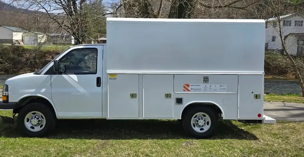 2025 Express 3500, 11' Reading Ready Van SL 75" with latchmatic system, 6.6 liter Gas Engine, 8-speed Auto Transmission, 9900 lbs GVWR, Air conditioning, Power windows, Power Door Locks, Cruise Control, Tilt Steering Wheel, Keyless remote, Bluetooth, Single Rear Wheel, Custom cloth bucket seats with folding armrests, Large outside heated mirrors, locking rear differential, Outside Temp Display, Trailer Tow package with 7 PIN connector, Large 31-gallon fuel tank, Chrome appearance package, 110-volt electrical receptacle, 150 amp alternator, 770 amps heavy-duty battery, Deluxe front console, three cup holders, stabilitrack stability control systems, am/fm stereo w/ MP3 Player, Chrome Front bumper, HD Black Vinyl Floor covering, OnStar, 3.42 rear axle, LT 245/75R16E All Season, rear vision camera, back up alarm, pooched rear bumper, galvanized shelves, A60 galvannealed steel, treadplate floor and inner tailgate surface, all-aluminum dish around the fuel cap, Rear access doors, 97 Decibel backup alarm.